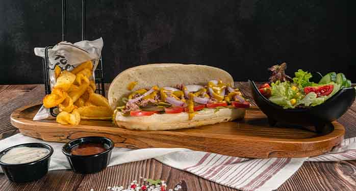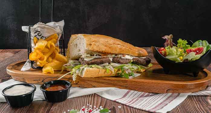 *Sandviç Ekmeğinde, Dana Lokum Bonfile, Iceberg Marul, Domates, Kornişon Turşu, Cheddar Peyniri ve Hardal Sos ile hazırlanır. Mini Salata, Kaşık Patates ve Türk Kahvesine Özel Soslar ile servis edilir.