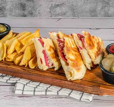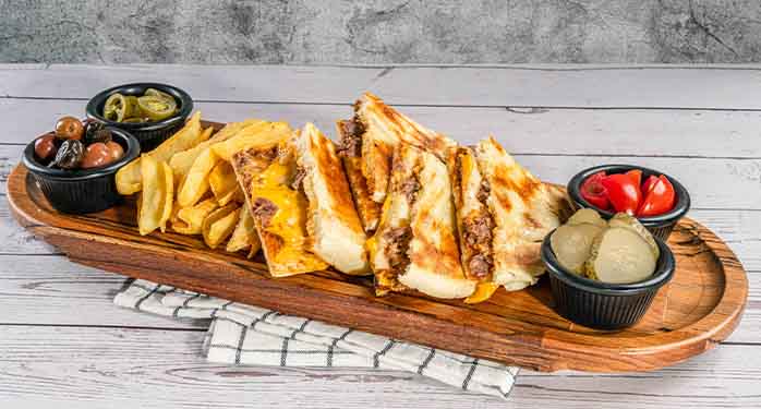 *Bazlama Ekmeğinde, Dana Kavurma, Acuka, Cheddar Peyniri, Kaşar Peyniri, Kaşık Patates, Jalapone Biber, Çeri Domates, Salatalık, Kornişon Turşu, Zeytin ve Tereyağın Eşsiz Buluşması
